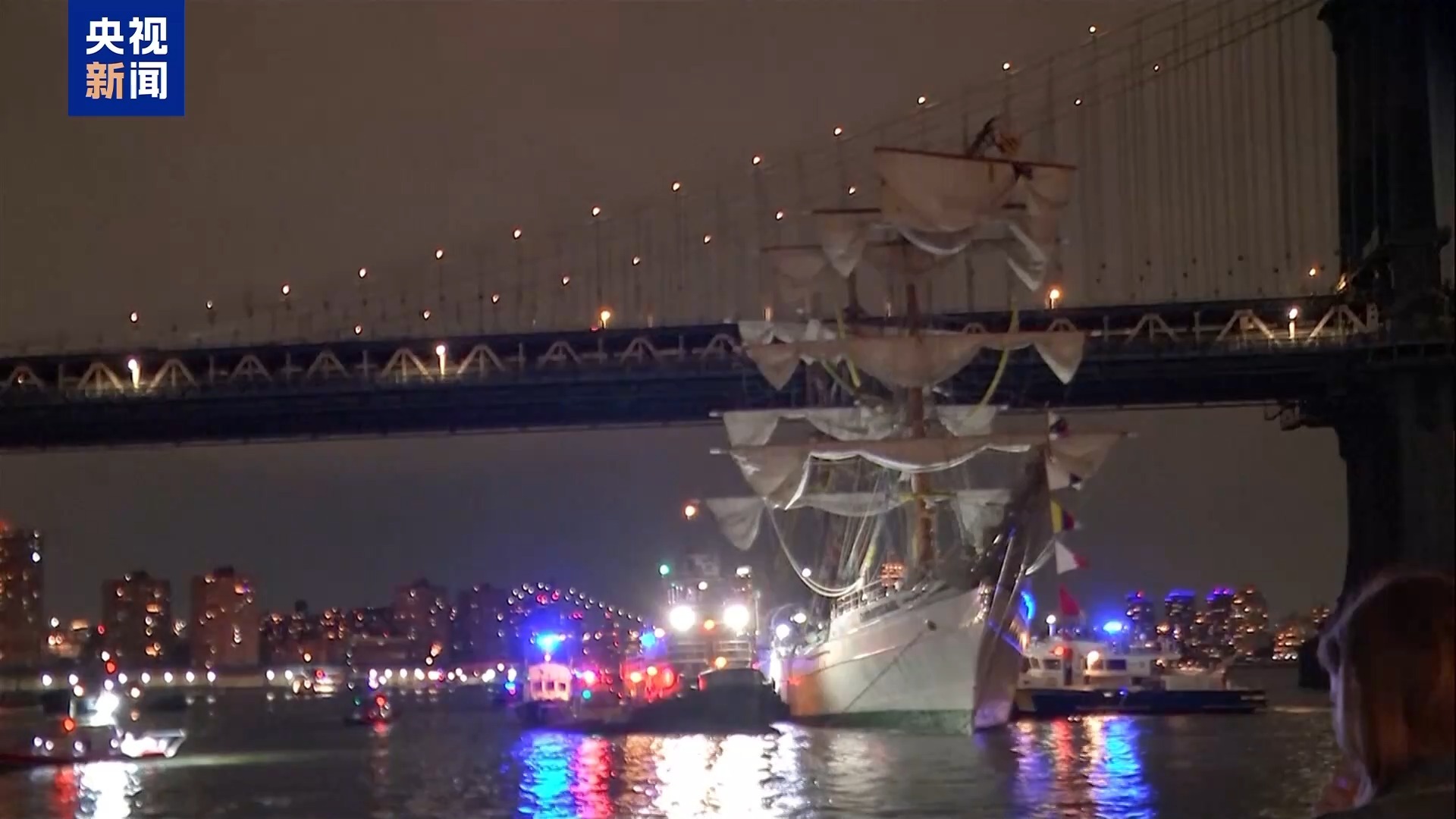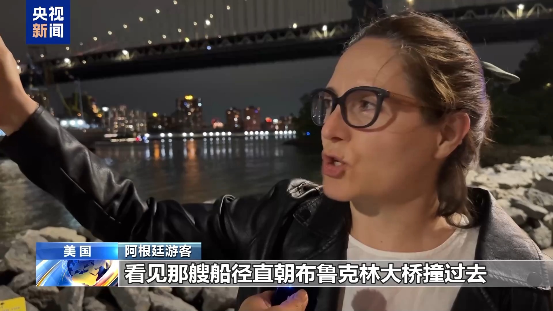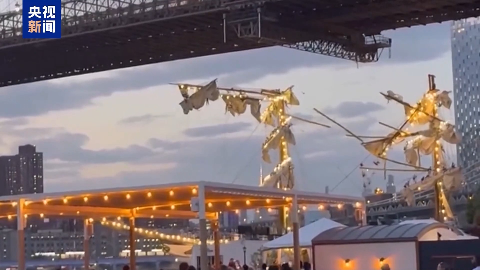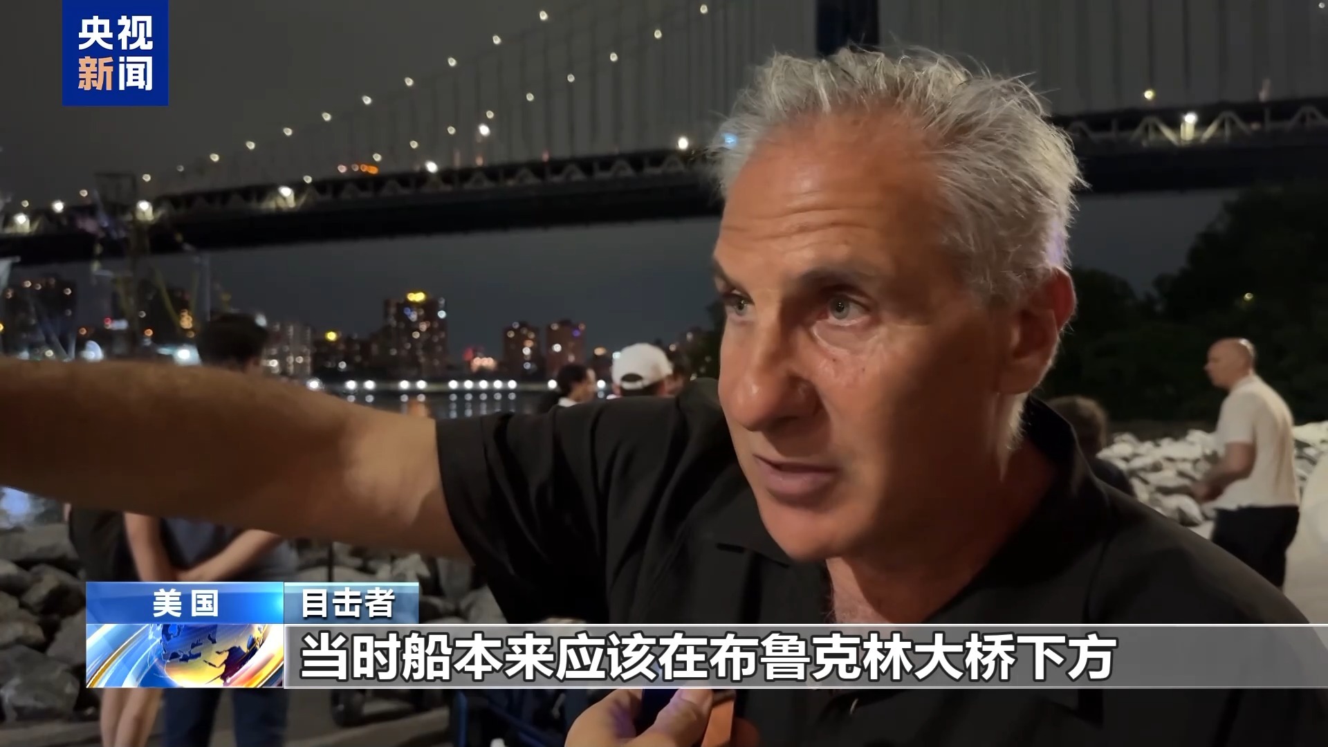 阿根廷游客:我当时正沿着滨海步道过马路,看见那艘船径直朝布鲁克林大桥撞过去,完全没停下,船顶的桅杆全都撞塌了。